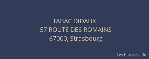 Voici les horaires de TABAC DIDAUX situé à Strasbourg,