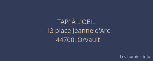 Voici les horaires de TAP' À L'OEIL situé à Orvault,