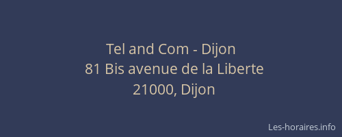 Voici les horaires de Tel and Com - situé à Dijon,