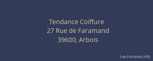 Voici les horaires de Tendance Coiffure situé à Arbois,