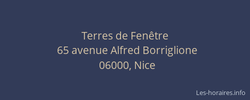 Voici les horaires de Terres de Fenêtre situé à Nice,