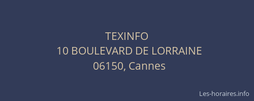 Vous pouvez renseigner les horaires TEXINFO situé à Cannes,