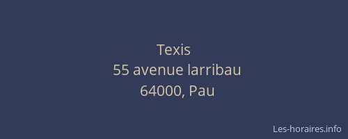 Voici les horaires de Texis situé à Pau,