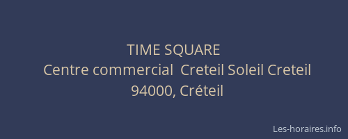 Vous pouvez renseigner les horaires TIME SQUARE situé à Créteil,