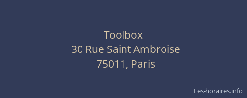 Voici les horaires de Toolbox situé à Paris 11ème,