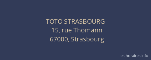 Voici les horaires de TOTO STRASBOURG situé à Strasbourg,