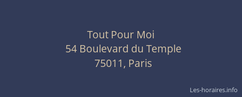 Voici les horaires de Tout Pour Moi situé à Paris 11ème,