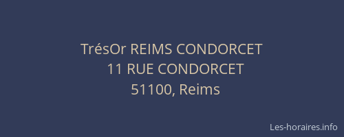 Voici les horaires de TrésOr REIMS CONDORCET situé à Reims,