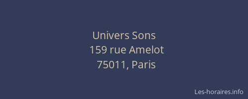 Voici les horaires de Univers Sons situé à Paris 11ème,