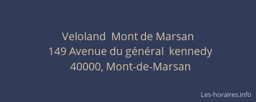 Voici les horaires de Veloland Mont de Marsan situé à Mont-de-Marsan,