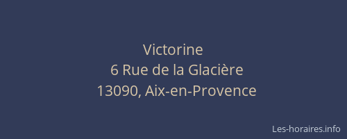 Voici les horaires de Victorine situé à Aix-en-Provence,