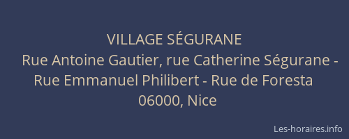 Voici les horaires de VILLAGE SÉGURANE situé à Nice,