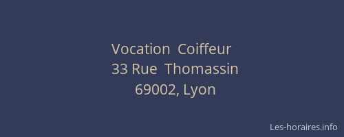 Voici les horaires de Vocation Coiffeur situé à Lyon 2ème,