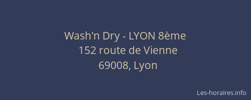 Vous pouvez renseigner les horaires Wash'n Dry - LYON 8ème situé à Lyon,