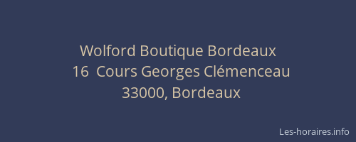 Voici les horaires de Wolford Boutique situé à Bordeaux,