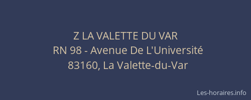 Voici les horaires de Z LA VALETTE DU VAR situé à La Valette-du-Var,
