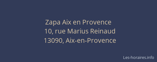 Voici les horaires de Zapa Aix en Provence situé à Aix-en-Provence,