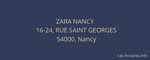 Voici les horaires de ZARA NANCY situé à Nancy,