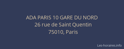 Voici les horaires de ADA PARIS 10 GARE DU NORD situé à Paris,