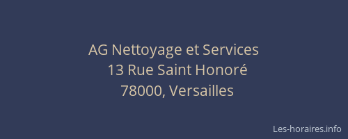 Voici les horaires de AG Nettoyage et Services situé à Versailles,