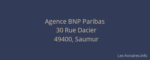 Voici les horaires de Agence BNP Paribas situé à Saumur,