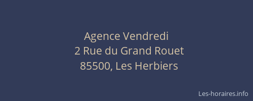 Voici les horaires de Agence Vendredi situé à Les Herbiers,