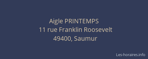 Voici les horaires de Aigle PRINTEMPS situé à Saumur,