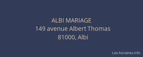 Voici les horaires de ALBI MARIAGE situé à Albi,