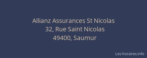 Voici les horaires de Allianz Assurances St Nicolas situé à Saumur,