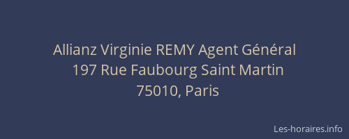 Voici les horaires de Allianz Virginie REMY Agent Général situé à Paris 10ème,