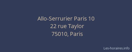 Voici les horaires de Allo-Serrurier 10 situé à Paris,