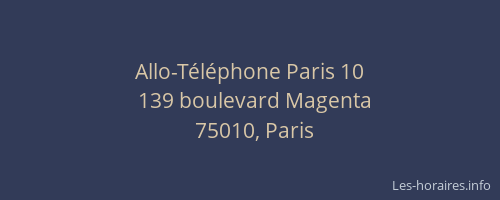 Voici les horaires de Allo-Téléphone 10 situé à Paris,