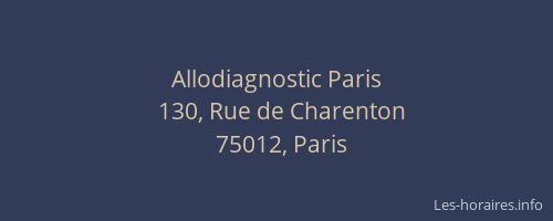 Voici les horaires de Allodiagnostic situé à Paris 12ème,