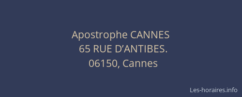 Voici les horaires de Apostrophe CANNES situé à Cannes,