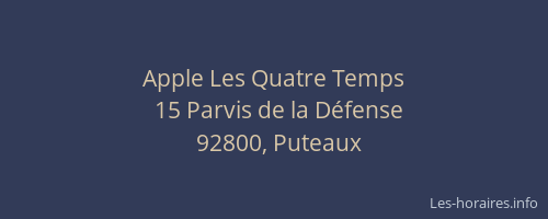 Voici les horaires de Apple Les Quatre Temps situé à Puteaux,