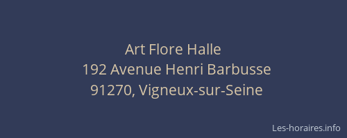Voici les horaires de Art Flore Halle situé à Vigneux-sur-Seine,
