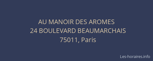 Voici les horaires de AU MANOIR DES AROMES situé à Paris 11ème,