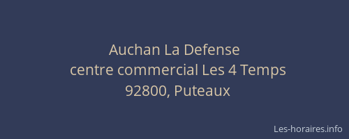 Voici les horaires de Auchan La Defense situé à Puteaux,