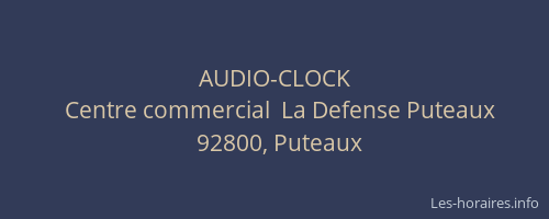 Vous pouvez renseigner les horaires AUDIO-CLOCK situé à Puteaux,