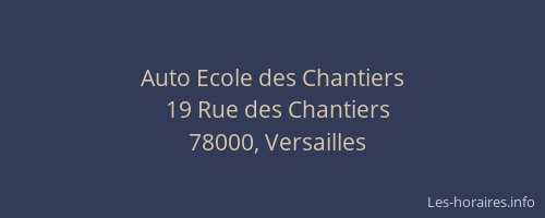 Voici les horaires de Auto Ecole des Chantiers situé à Versailles,