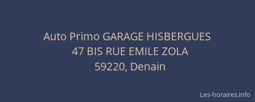 Voici les horaires de Auto Primo GARAGE HISBERGUES situé à Denain,