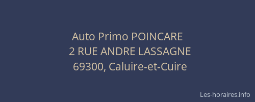 Voici les horaires de Auto Primo POINCARE situé à Caluire-et-Cuire,