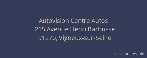 Voici les horaires de Autovision Centre Autos situé à Vigneux-sur-Seine,