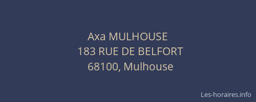 Voici les horaires de Axa MULHOUSE situé à Mulhouse,