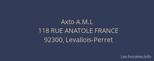 Voici les horaires de Axto A.M.L situé à Levallois-Perret,