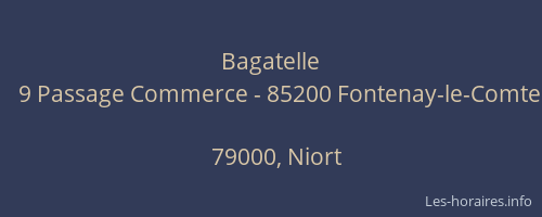 Voici les horaires de Bagatelle situé à Niort,