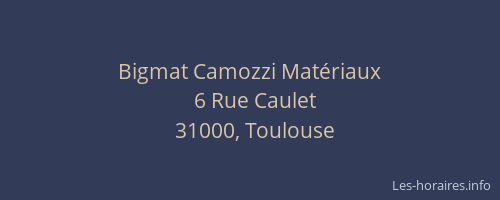 Voici les horaires de Bigmat Camozzi Matériaux situé à Toulouse,