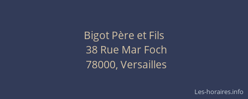 Voici les horaires de Bigot Père et Fils situé à Versailles,