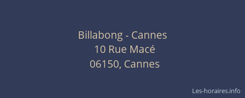 Voici les horaires de Billabong - situé à Cannes,