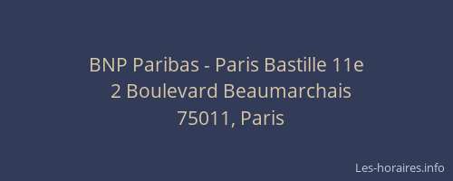Voici les horaires de BNP Paribas - Bastille 11e situé à Paris,